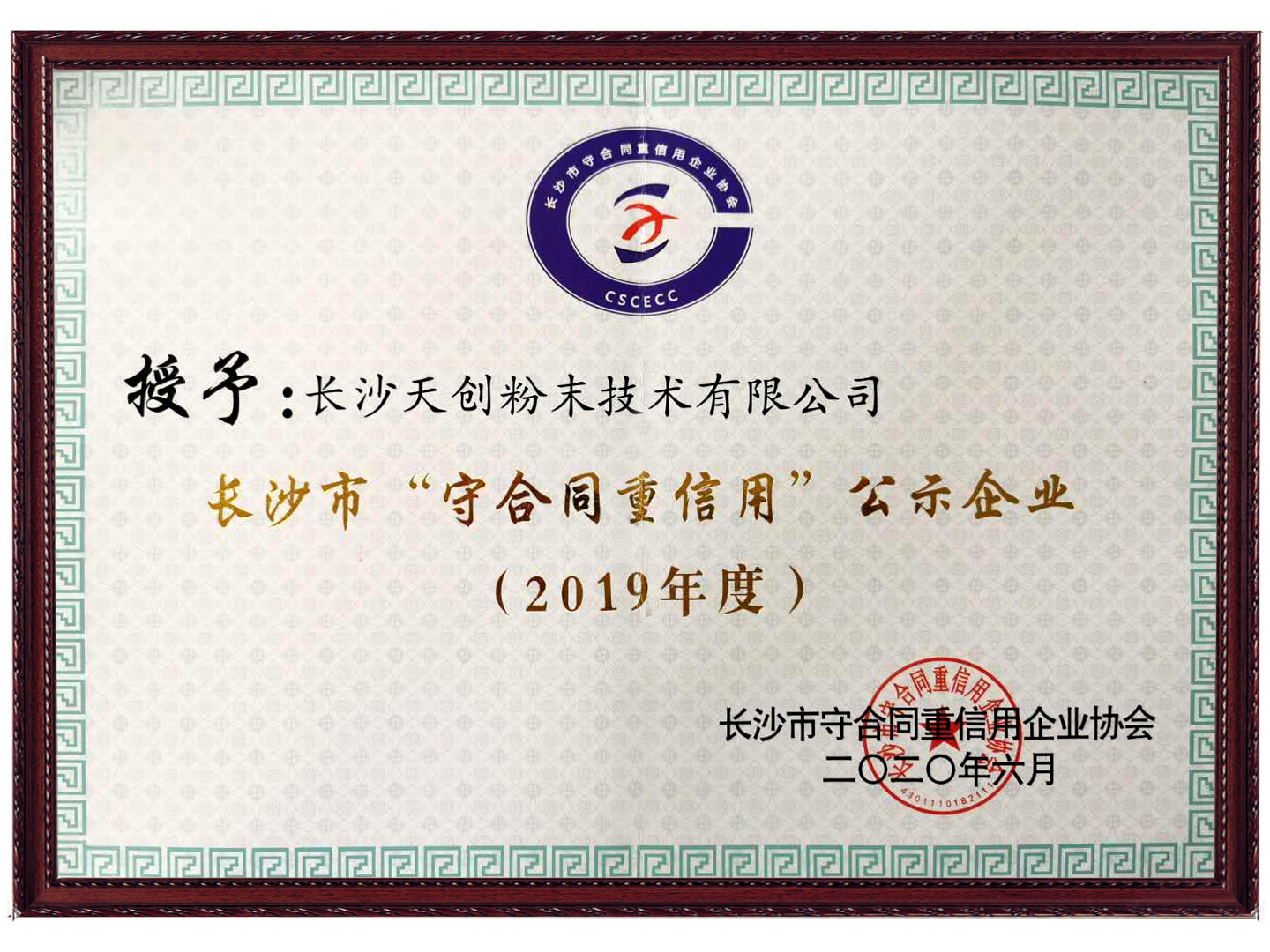 摘要:長沙天創粉末技術有限公司榮獲2019年度“守合同重信用”公示企業